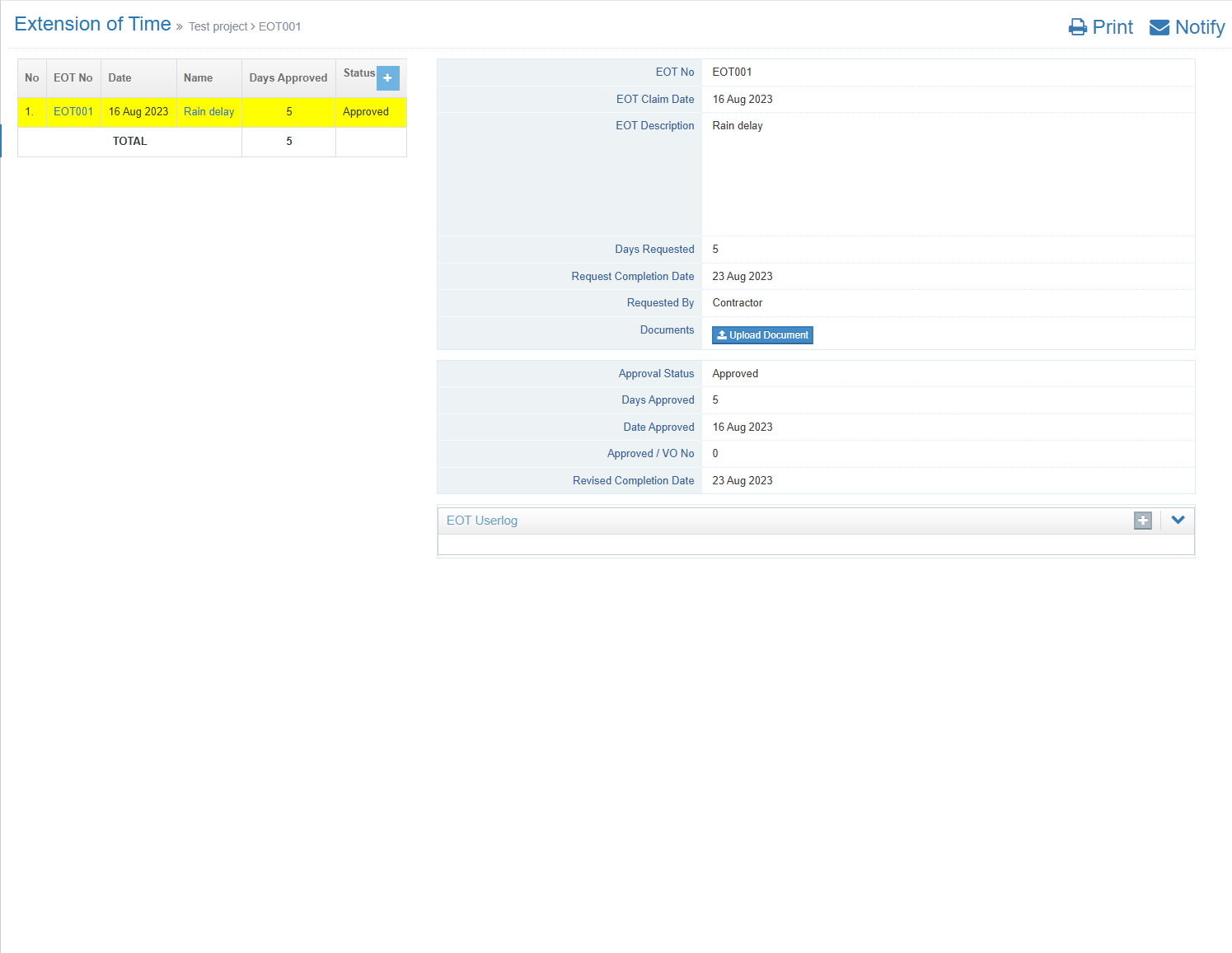 | Extension of Time: Contractors may request extension of time claims, request working days upload supportive documents and wait for Superintendents review / approvals. | ![]() |